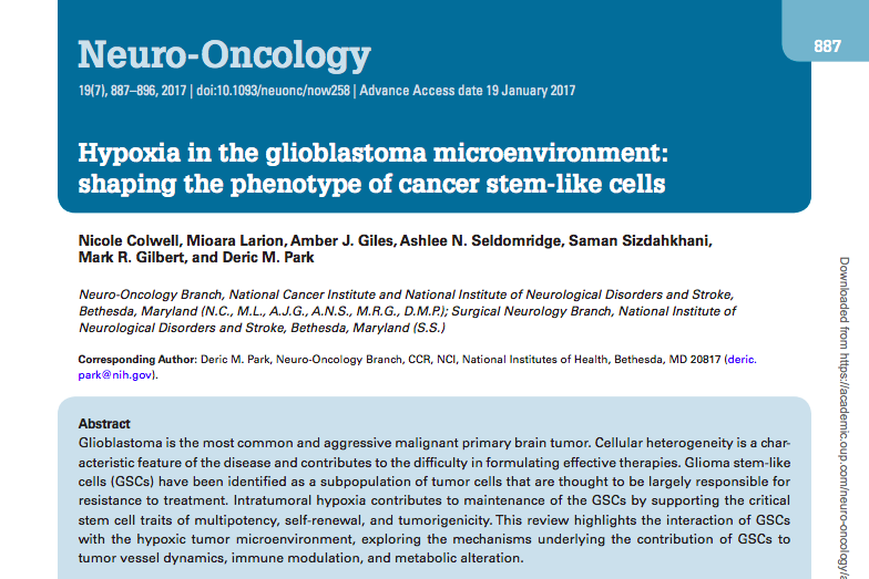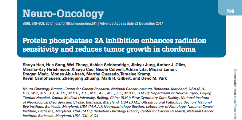 Portfolio: Review Paper: Colwell NA - Neuro-oncology (2017) Hypoxia in the glioblastoma microenvironment shaping the phenotype of cancer stem-like cells Full Text Powerpoint Deck: Grand Rounds Patient Case Presentation Full Presentation Original Research: Protein phosphatase 2A inhibition enhances radiation sensitivity and reduces tumor growth in chordoma Full Text